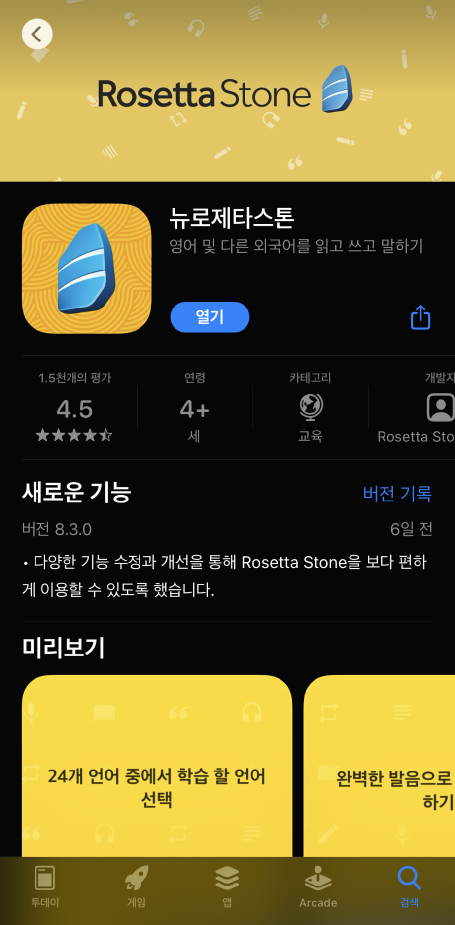 이제 떨리는 마음으로 아이폰에서 로제타스톤 검색하여 다운로드 ^^
