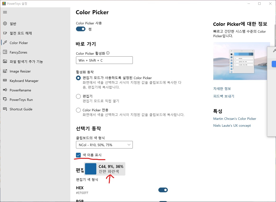 어쨌거나 오늘 소개할 PowerToys 내 Color Picker 의 특수 기능을 소개하려고 합니다.