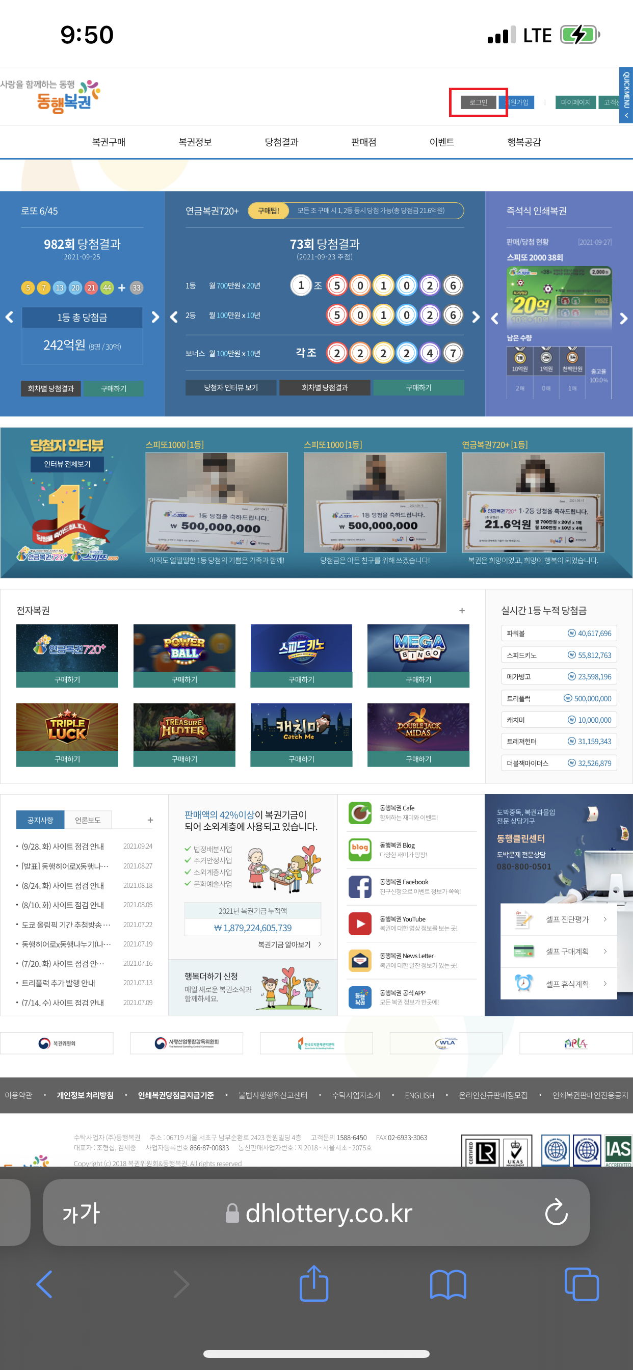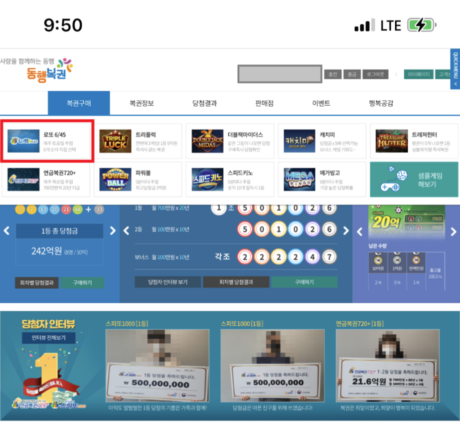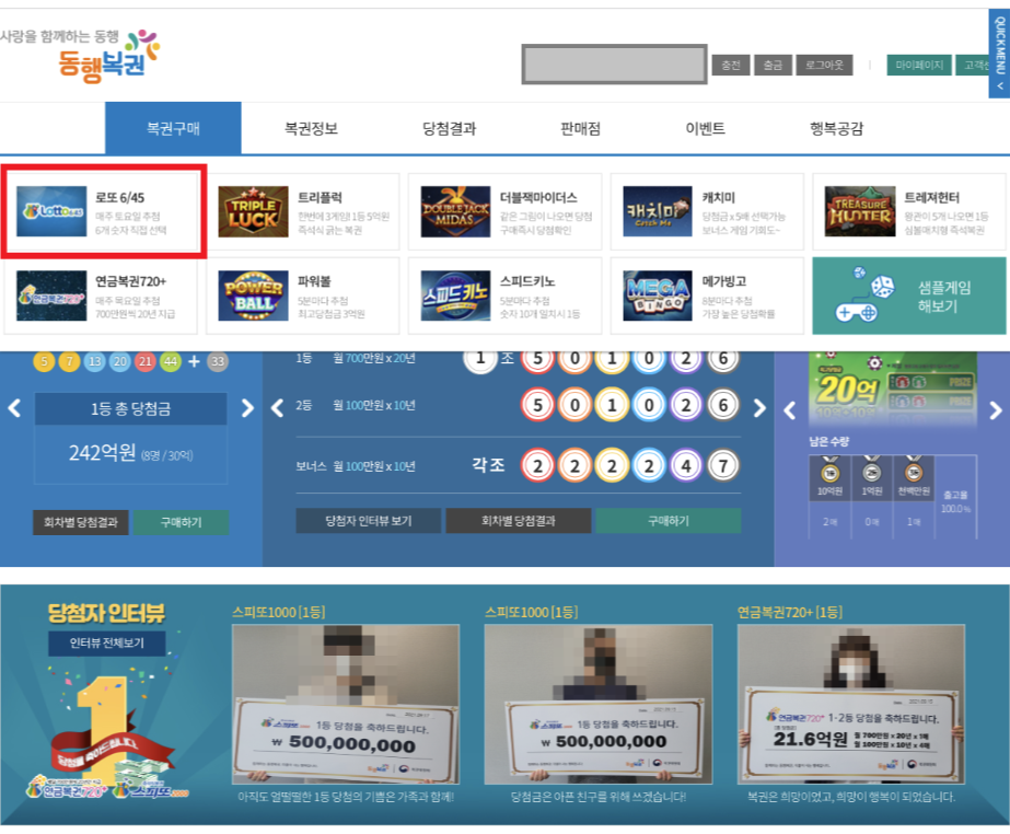 서둘러 회원가입하고 복권 구매를 하려고 하니...